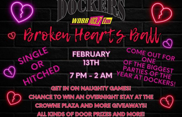 WHO: YOU! SINGLE OR IN A RELATIOSHIP! COME OUT! WHAT: DOCKER’S 12th ANNUAL BROKEN HEARTS BALL! WHEN: FRIDAY FEBRUARY 13TH…
