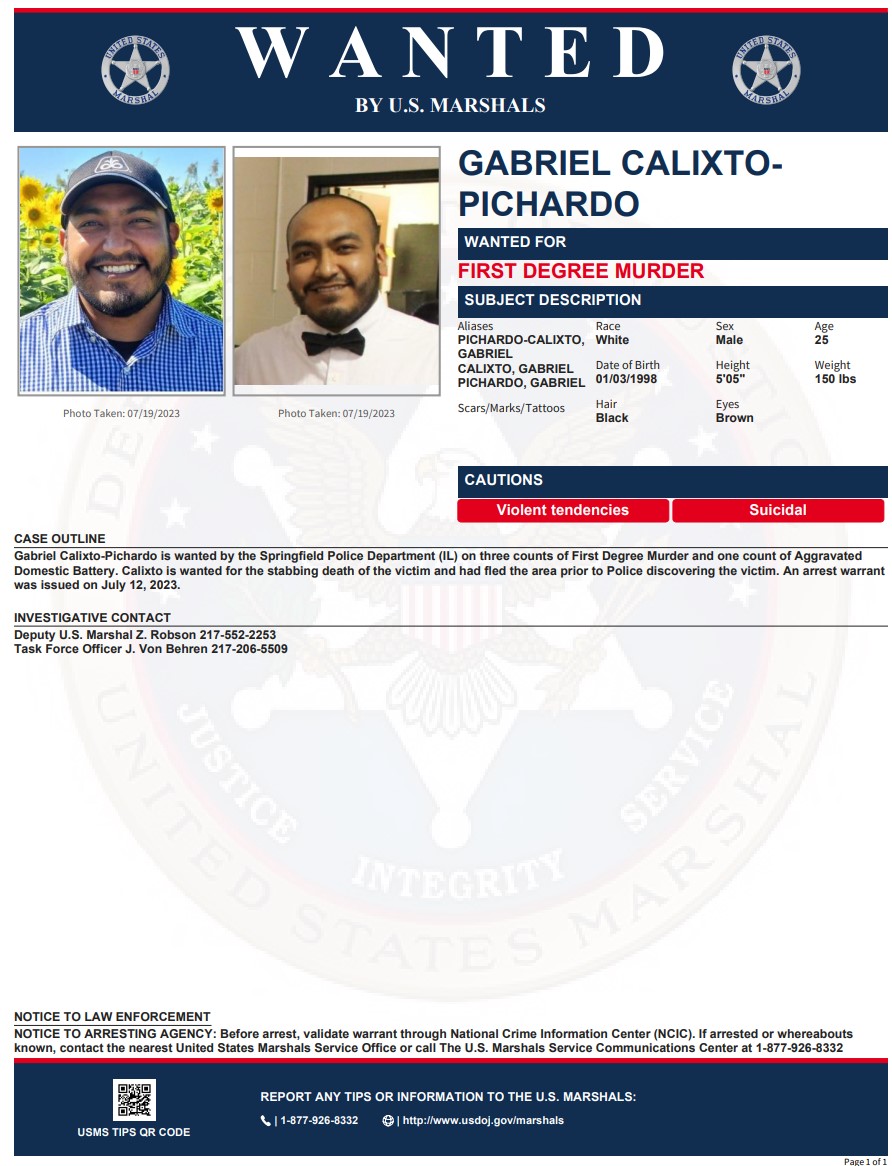 The US Marshals Service has issued a wanted poster for Gabriel Calixto in connection with the murder of Emma Shafer.